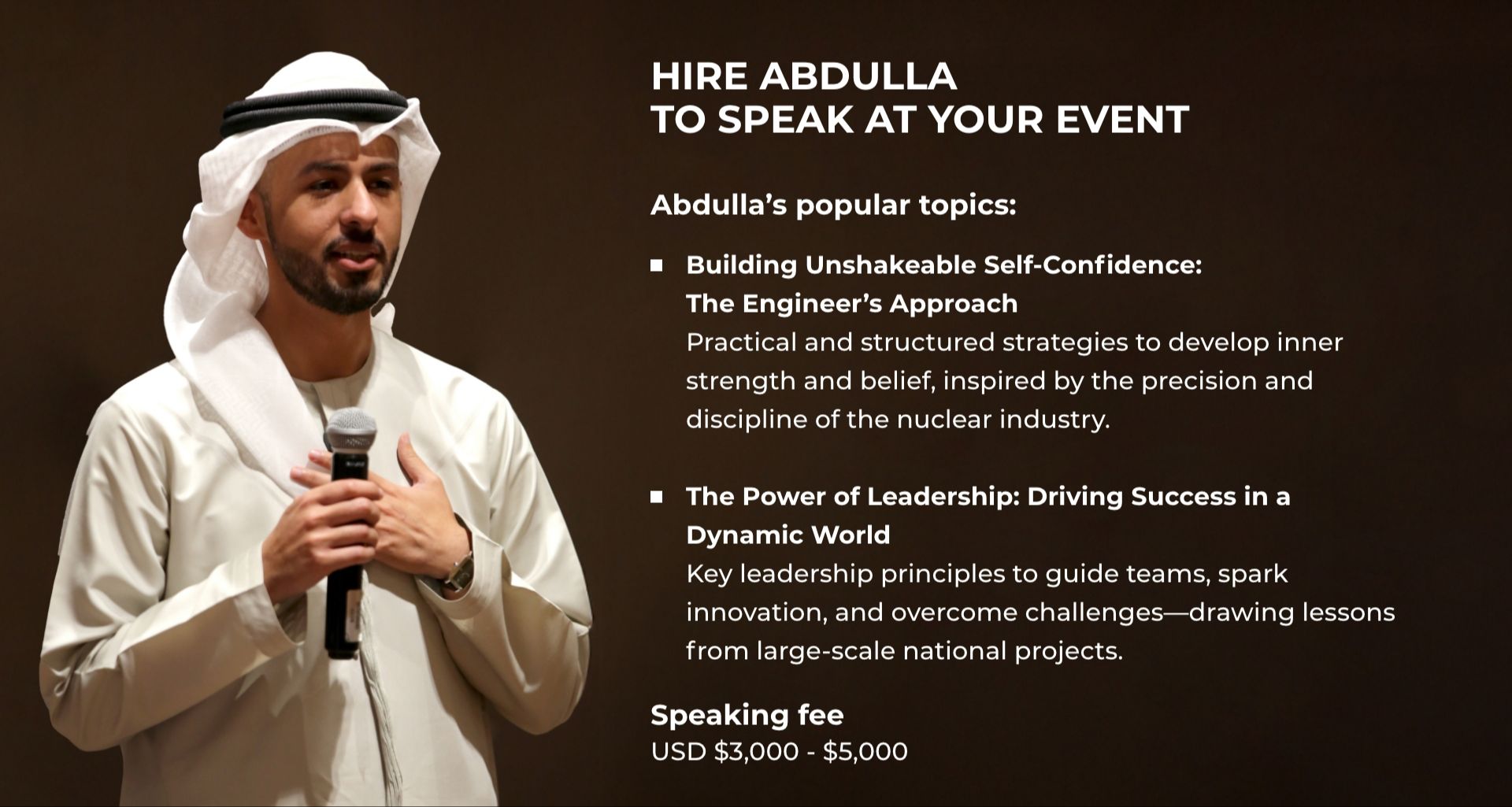 Abdulla Alnuaimi is a distinguished engineer and highly skilled nuclear professional, currently contributing to the critical operations at the Barakah Nuclear Power Plant in the United Arab Emirates. With a unique blend of technical mastery and a profound understanding of human potential, Abdulla brings a fresh and insightful perspective to personal development and leadership in the modern world.